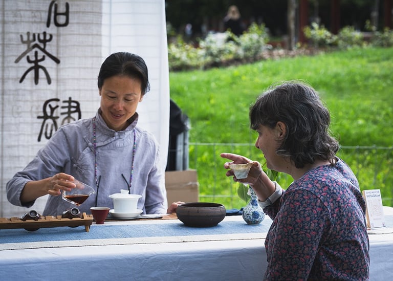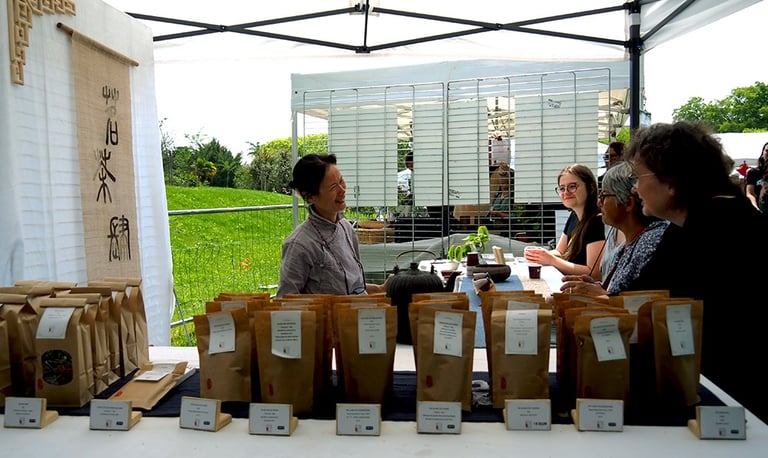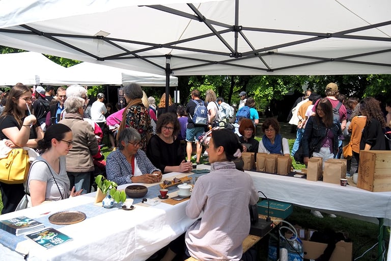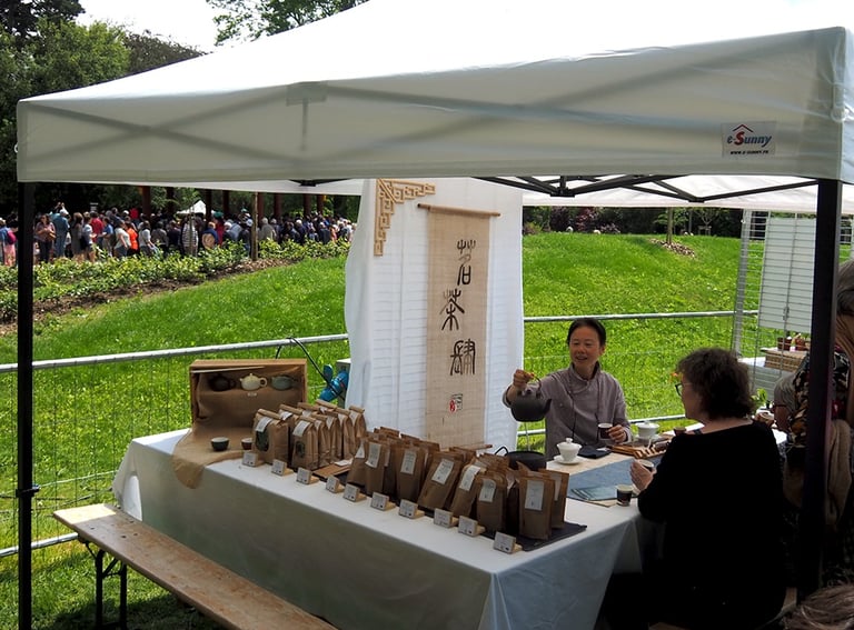 Plus de 40 exposants (une dizaine en 2023) sont venus présenter à un large public toute l’étendue de leur talent en matière de culture du thé en Asie. Potiers et céramistes, artistes, horticulteurs, négociants en thé et bien plus se sont rassemblés pour cette journée printanière.