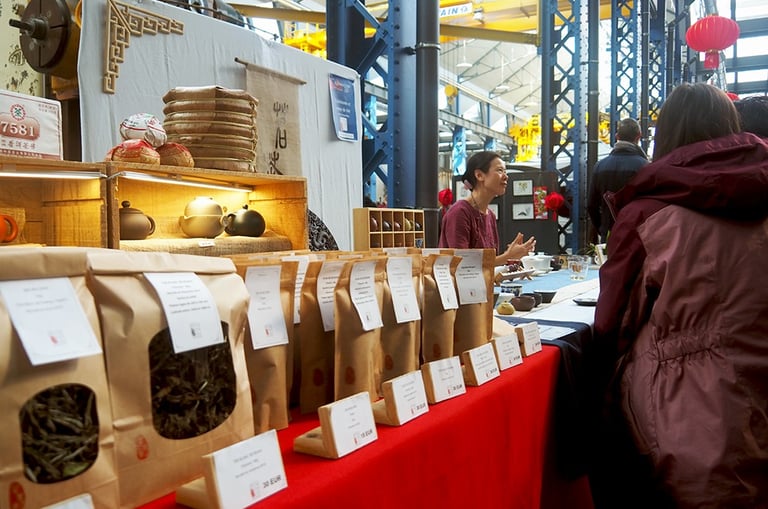 Les visiteurs pouvaient ainsi découvrir un atelier par couleur de thé. Ming Cha Si était présent pour la deuxième fois au stand des thés fermentés (Pu'Er).