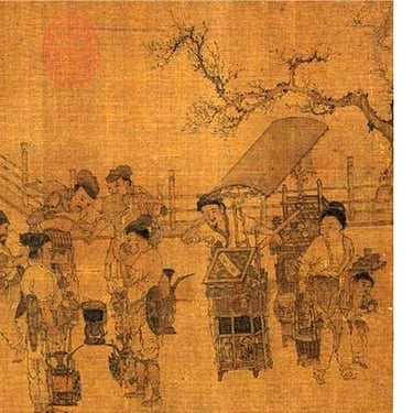 Les concours de thé apparaissent sous la dynastie Tang (618-907) mais leur popularité se repend plutôt sous les Song. Ce loisir touche toutes les couches de la société, de l’empereur aux paysans, en passant par les hauts fonctionnaires et les petits commerçants.