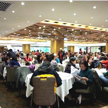 Après 9h du matin, c’est au tour des femmes au foyer de passer au « Cha Lou ». Elles viennent de déposer les enfants et rejoignent leurs amies pour un moment sympathique autour d’une théière et de quelques Dim Sum.